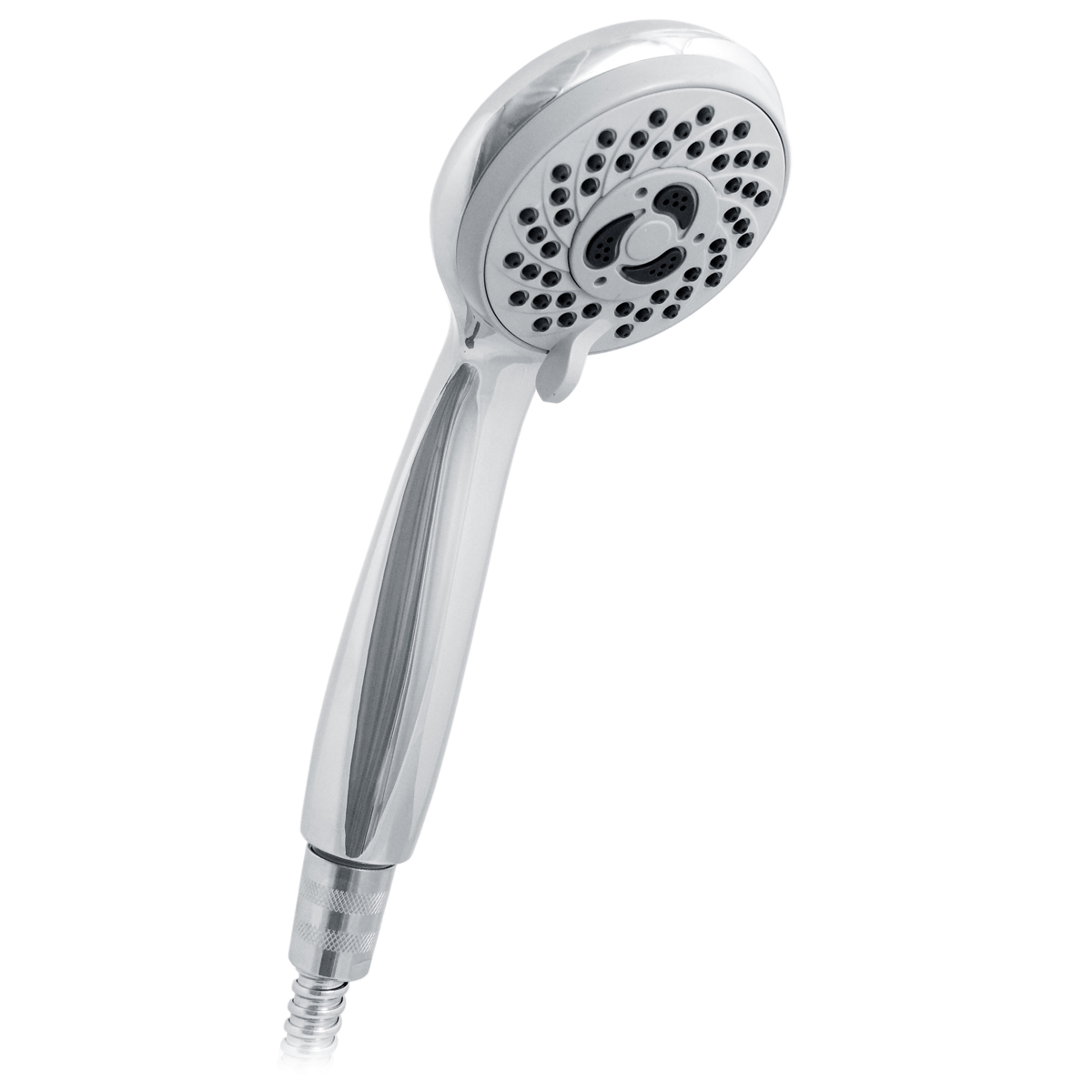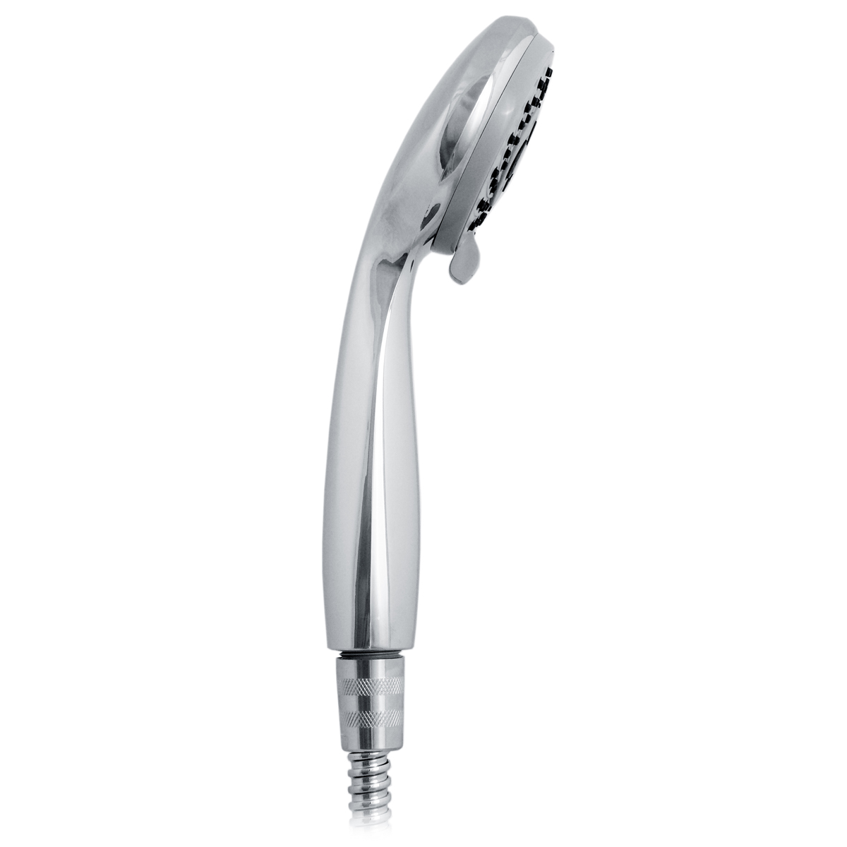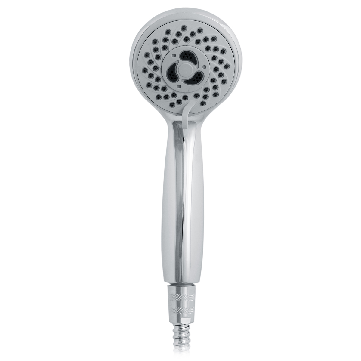 The FineFlo modern round handset is ideal for use with most shower systems. The Chrome multi-mode self-clean Handset has 4 settings: Normal Spray, Pulse Massage, Combination Normal/Pulse, Pause.